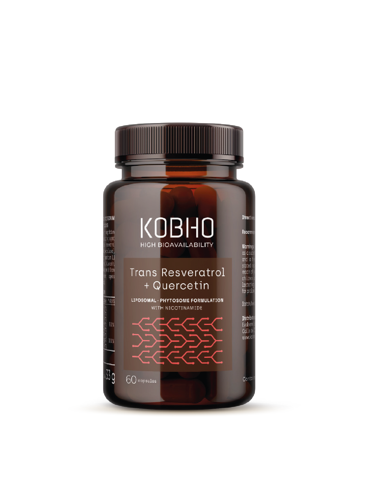 Extracto de Polygonum cuspidatum, resveratrol liposomal liofilizado, extracto de Sophora japonica, vitamina C, quercetina, niacina, lecitina de soja y excipientes.